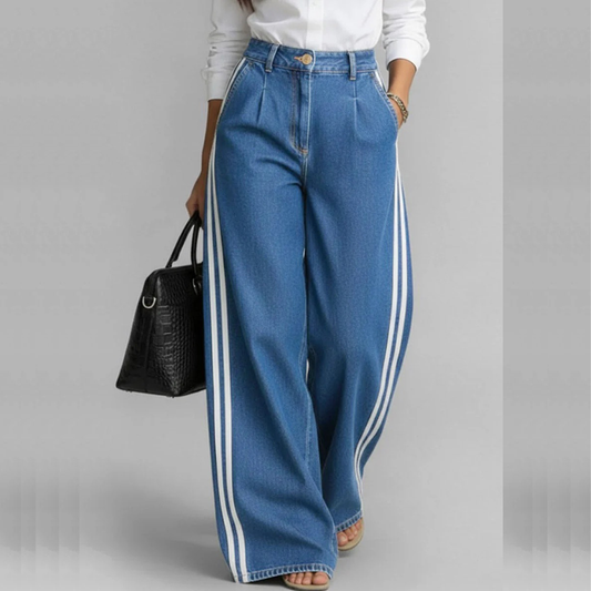 DEOSA PANTALÓN DENIM WIDE LEG CON FRANJAS LATERALES