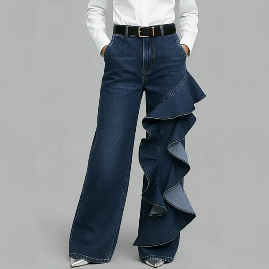 GENEDA PANTALÓN VAQUERO WIDE LEG CON VOLANTE ASIMÉTRICO