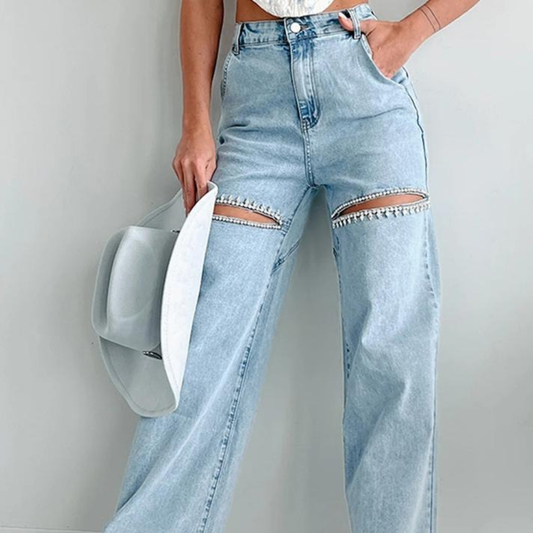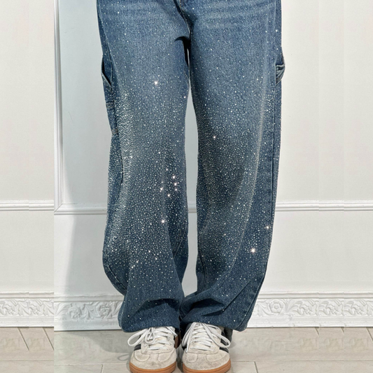 MADANNE JEANS TIRO ALTO CON DETALLES DE PEDRERIA